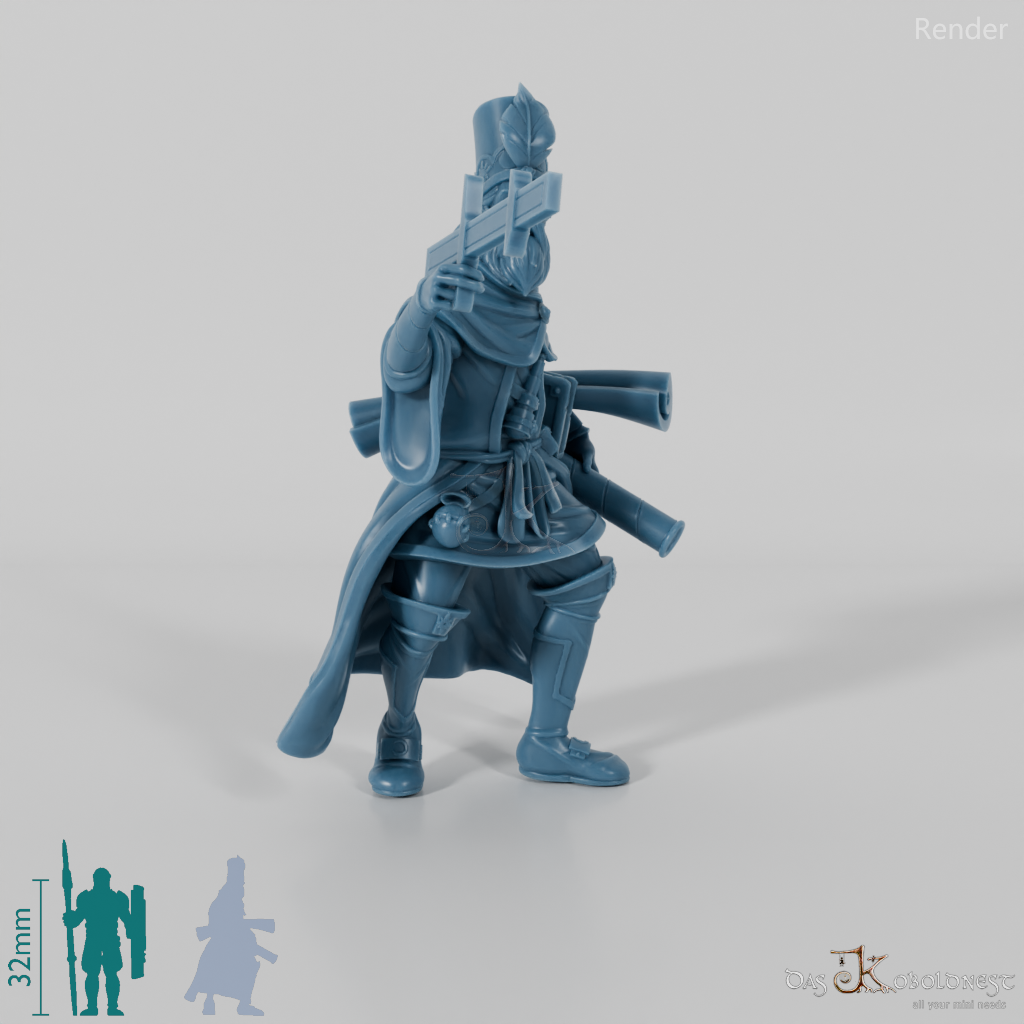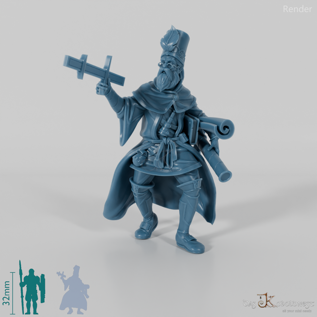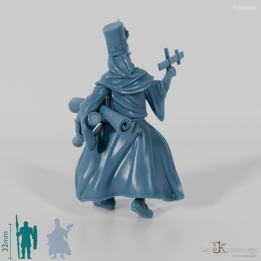 Diese detaillierte Miniatur ist ein Meisterwerk für alle Liebhaber der Sternenbeobachtung und des Fantasy-Modellbaus. Der menschliche Astronom ist eine Figur voller Charakter. Mit hohem Hut, langen Haaren und einem dichten Bart strahlt er eine Aura gelehrter Kenntnis aus. Der lose unter dem Arm gehaltene Stapel von Büchern und Schriftrollen verleiht ihm aber auch einen Hauch von Hektik. In seiner anderen Hand hält er einen großen Messschieber, ein Instrument, das seine Präzision und sein Streben nach Genauigkeit in der Astronomie unterstreicht. Die Figur eignet sich perfekt als Mittelpunkt eines jeden astronomischen Dioramas oder als faszinierende Ergänzung in deinem Tabletop-Spiel. Sie bringt nicht nur eine wissenschaftliche Note in deine Szenen, sondern erzählt auch eine Geschichte von Entdeckung und Erkundung.