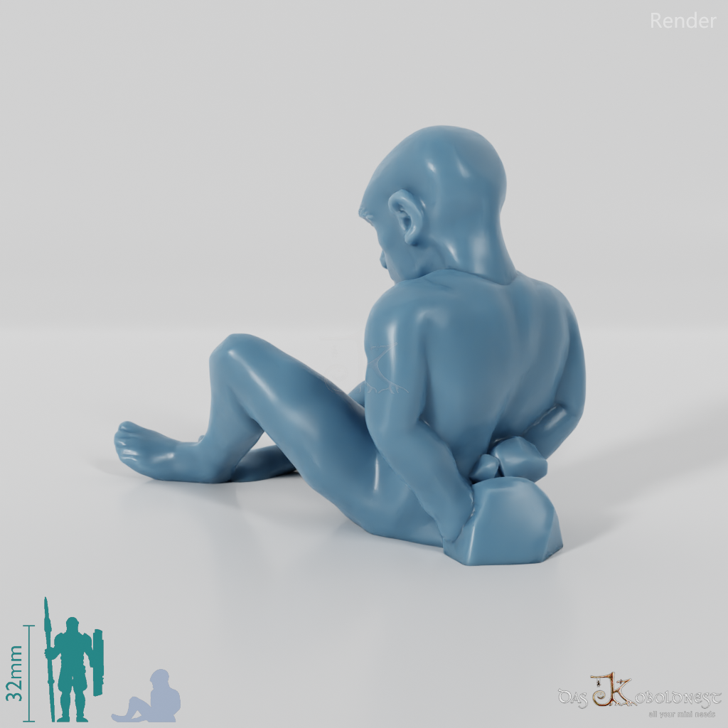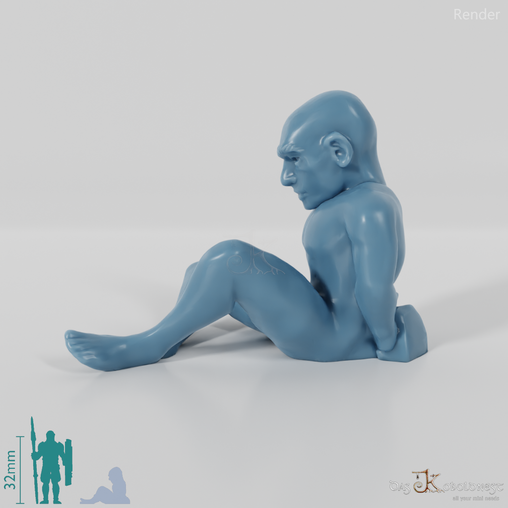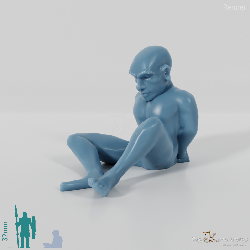 Unbekleideter Gefangener, der auf dem Boden sitzt