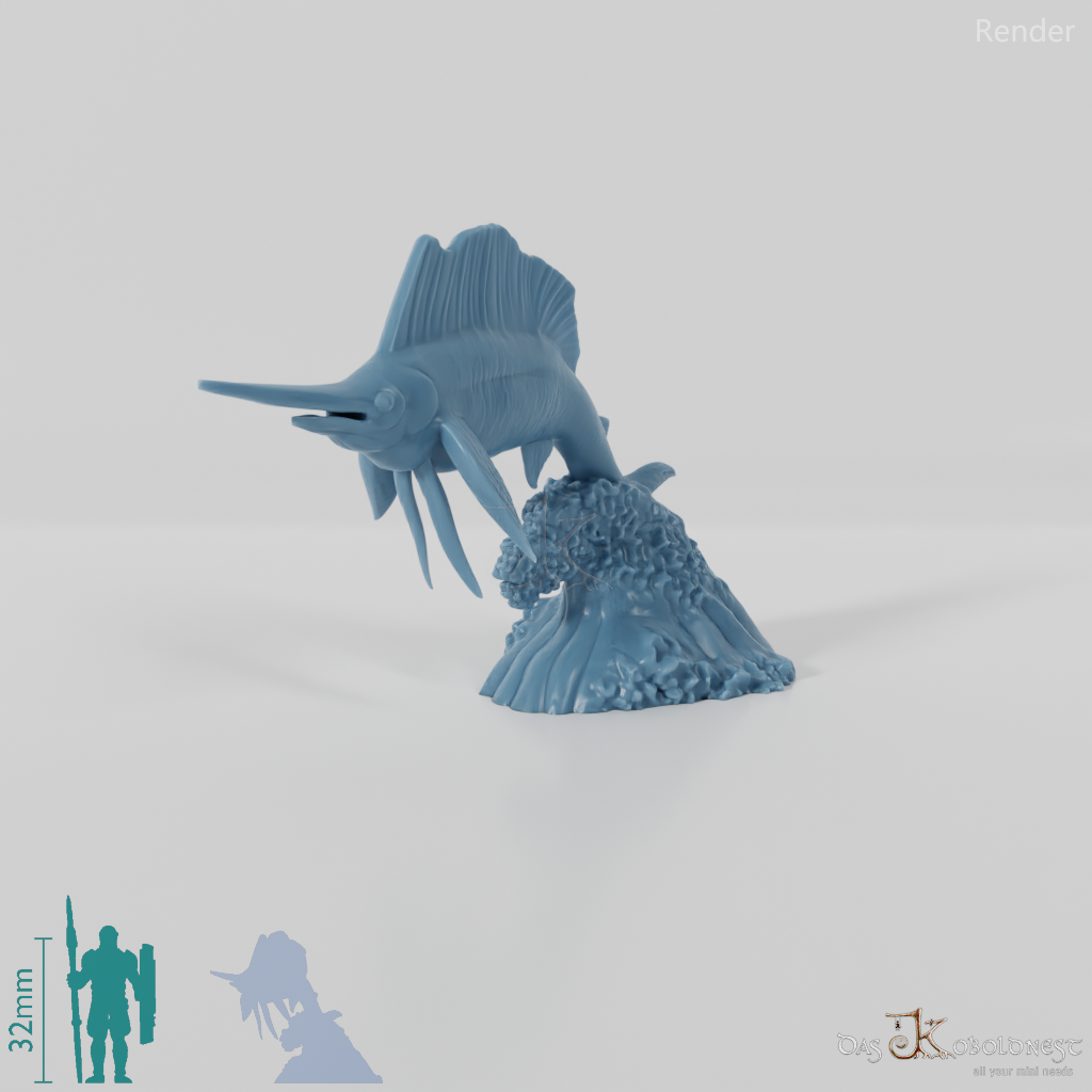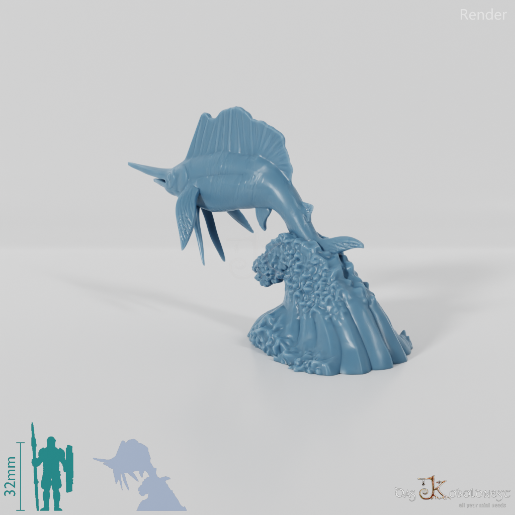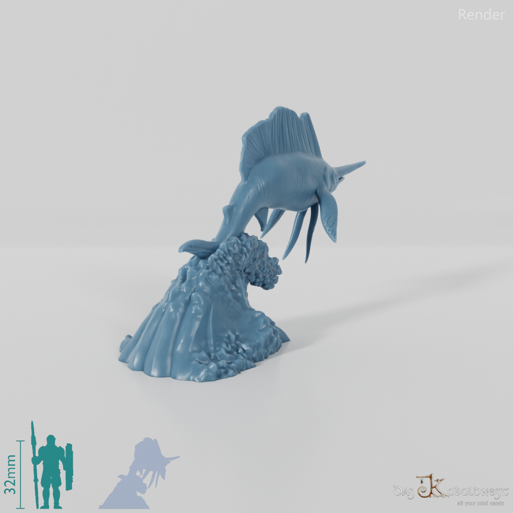 Großer Fisch mit segelförmiger Rückenflosse und spitzer Schnauze