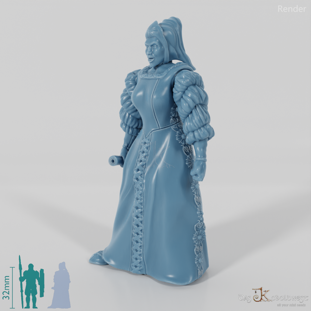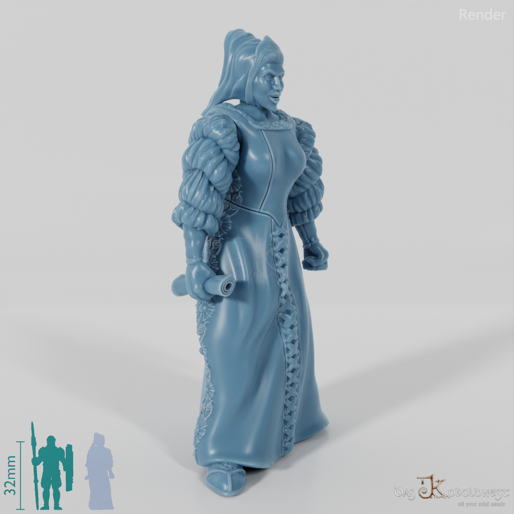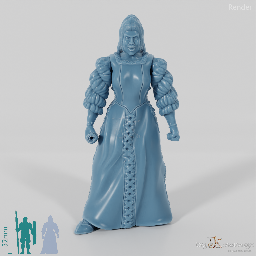 Die Seelen des urbanen Lebens Jede Stadt hat ihre eigenen Heldinnen, nicht nur die Kriegerinnen oder Magierinnen, sondern die alltäglichen Menschen, die das Herzstück jeder Metropole bilden. Dieses Modell einer Adeligen verkörpert das pulsierende Leben und die Vielfalt urbaner Gemeinschaften. Mit akribischer Detailarbeit gestaltet, fängt dieses Modell die Essenz des täglichen Lebens in einer mittelalterlichen Stadt ein, sei es eine Handwerkerin bei der Arbeit, eine Händlerin, die ihre Waren feilbietet, oder eine Bürgerin, die einen Stadtspaziergang genießt. Perfekt, um dein städtisches Szenario in Wargames oder Rollenspielen zu bereichern, dank hochdetaillierte Kleidung, Pose und Accessoires, die den Charakter und Beruf der Stadtbewohnerin hervorheben. Jeder Mensch hat seine eigene Geschichte zu erzählen. Füge dieses Modell zu deiner Sammlung hinzu und belebe die Straßen deiner Stadt mit den Geschichten und dem Alltag ihrer Bewohner:innen. Das Modell wird mit separatem Kopf, Körper und Armen geliefert und ist beliebig mit allen ebenso modularen weiblichen Stadtmenschenmodellen oder Einzelteilen kombinierbar.