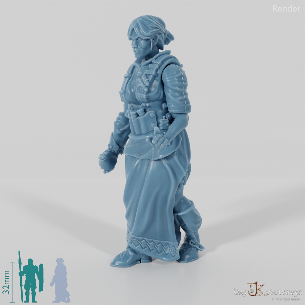 Die Seelen des urbanen Lebens Jede Stadt hat ihre eigenen Heldinnen, nicht nur die Kriegerinnen oder Magierinnen, sondern die alltäglichen Menschen, die das Herzstück jeder Metropole bilden. Dieses Modell einer Alchemistin verkörpert das pulsierende Leben und die Vielfalt urbaner Gemeinschaften. Mit akribischer Detailarbeit gestaltet, fängt dieses Modell die Essenz des täglichen Lebens in einer mittelalterlichen Stadt ein, sei es eine Handwerkerin bei der Arbeit, eine Händlerin, die ihre Waren feilbietet, oder eine Bürgerin, die einen Stadtspaziergang genießt. Perfekt, um dein städtisches Szenario in Wargames oder Rollenspielen zu bereichern, dank hochdetaillierte Kleidung, Pose und Accessoires, die den Charakter und Beruf der Stadtbewohnerin hervorheben. Jeder Mensch hat seine eigene Geschichte zu erzählen. Füge dieses Modell zu deiner Sammlung hinzu und belebe die Straßen deiner Stadt mit den Geschichten und dem Alltag ihrer Bewohner:innen. Das Modell wird mit separatem Kopf, Körper und Armen geliefert und ist beliebig mit allen ebenso modularen weiblichen Stadtmenschenmodellen oder Einzelteilen kombinierbar.