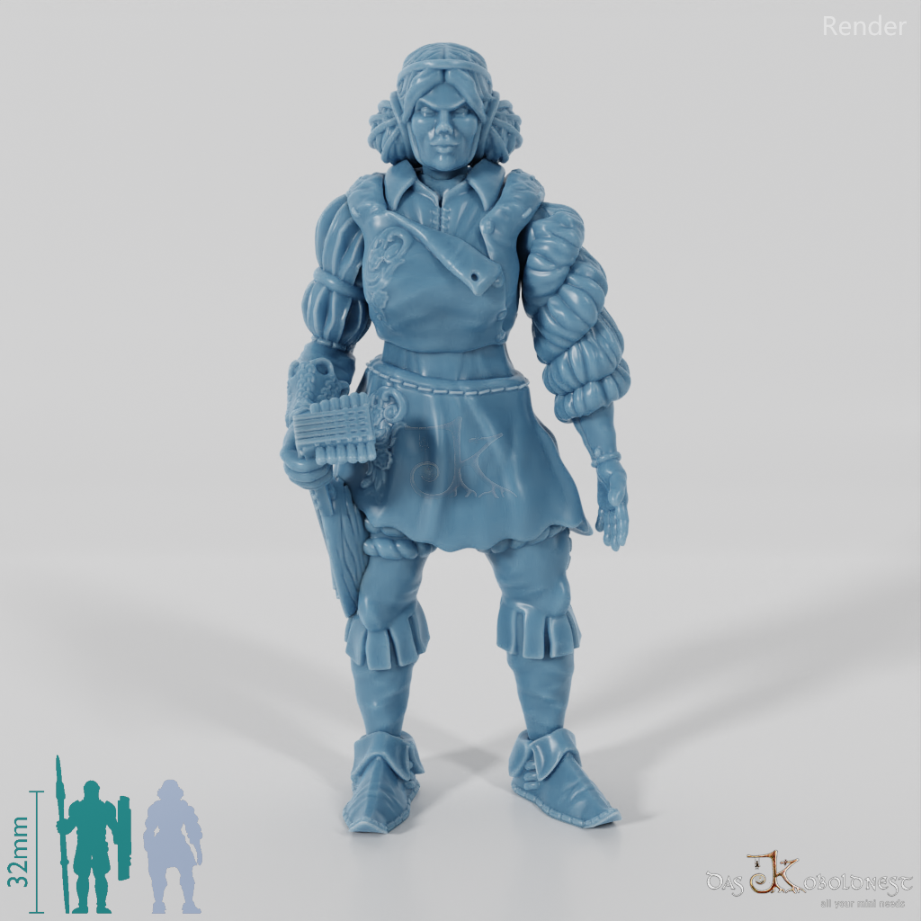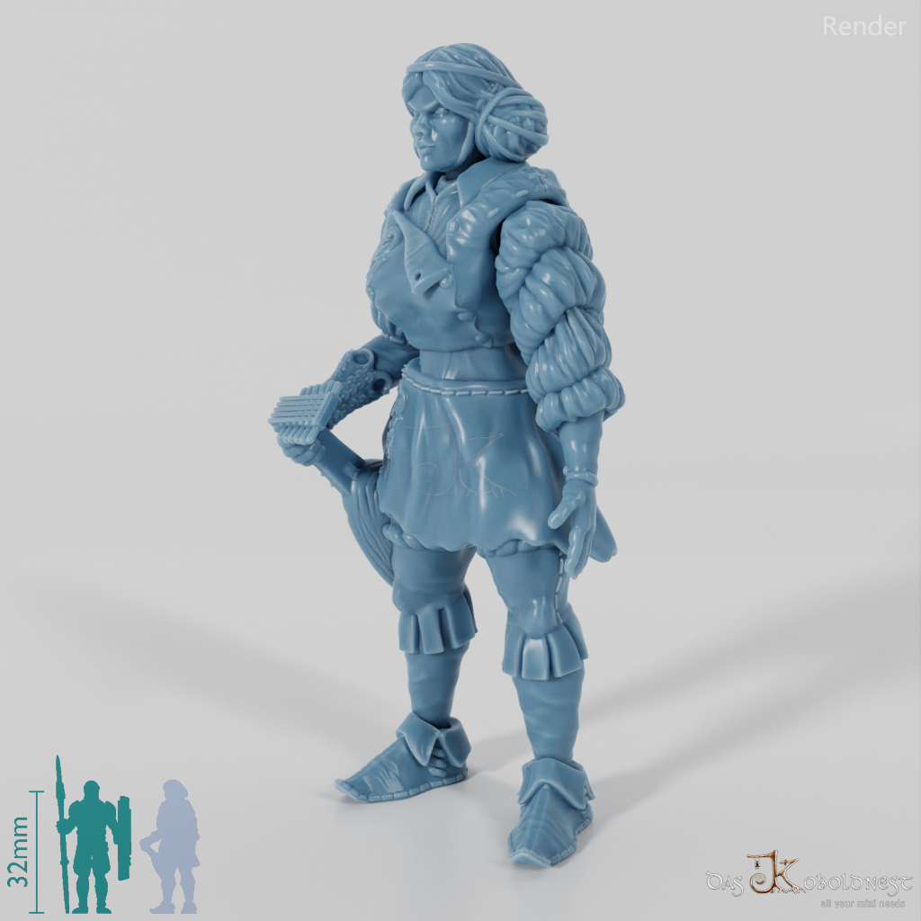 Die Seelen des urbanen Lebens Jede Stadt hat ihre eigenen Heldinnen, nicht nur die Kriegerinnen oder Magierinnen, sondern die alltäglichen Menschen, die das Herzstück jeder Metropole bilden. Dieses Modell einer Bediensteten verkörpert das pulsierende Leben und die Vielfalt urbaner Gemeinschaften. Mit akribischer Detailarbeit gestaltet, fängt dieses Modell die Essenz des täglichen Lebens in einer mittelalterlichen Stadt ein, sei es eine Handwerkerin bei der Arbeit, eine Händlerin, die ihre Waren feilbietet, oder eine Bürgerin, die einen Stadtspaziergang genießt. Perfekt, um dein städtisches Szenario in Wargames oder Rollenspielen zu bereichern, dank hochdetaillierte Kleidung, Pose und Accessoires, die den Charakter und Beruf der Stadtbewohnerin hervorheben. Jeder Mensch hat seine eigene Geschichte zu erzählen. Füge dieses Modell zu deiner Sammlung hinzu und belebe die Straßen deiner Stadt mit den Geschichten und dem Alltag ihrer Bewohner:innen. Das Modell wird mit separatem Kopf, Körper und Armen geliefert und ist beliebig mit allen ebenso modularen weiblichen Stadtmenschenmodellen oder Einzelteilen kombinierbar.