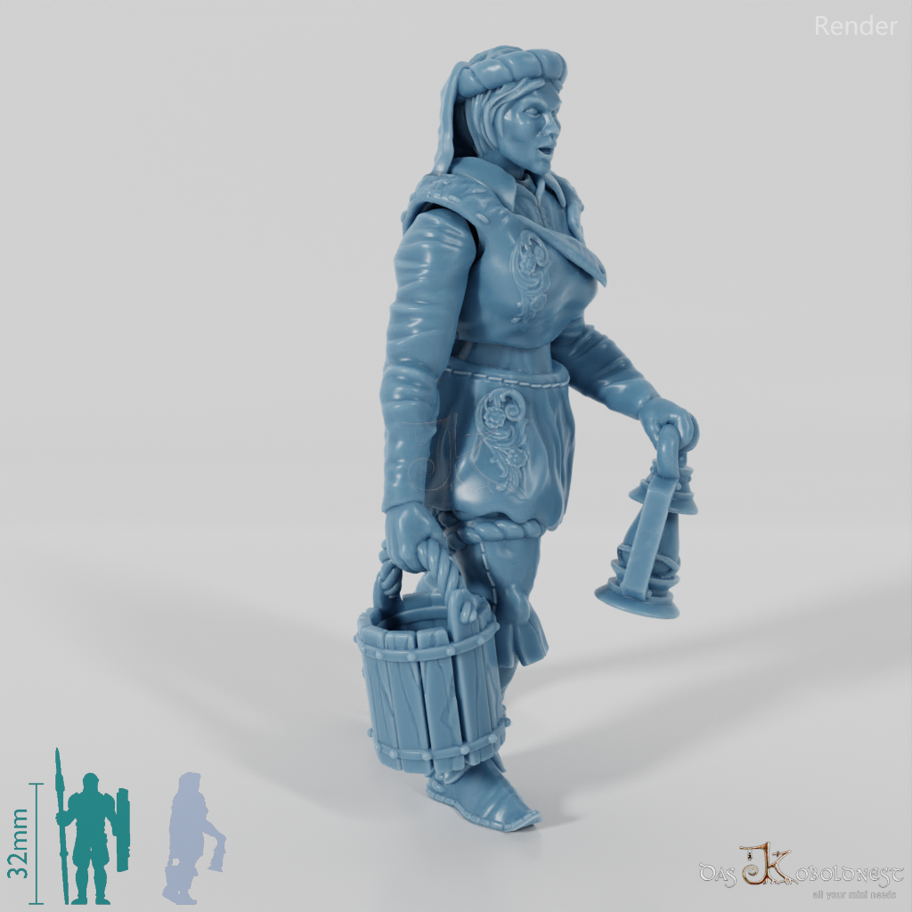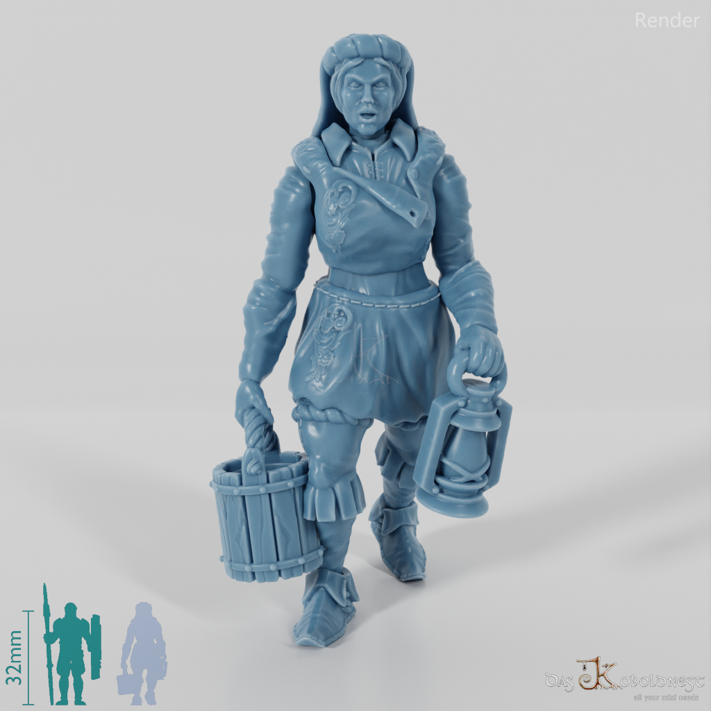 Die Seelen des urbanen Lebens Jede Stadt hat ihre eigenen Heldinnen, nicht nur die Kriegerinnen oder Magierinnen, sondern die alltäglichen Menschen, die das Herzstück jeder Metropole bilden. Dieses Modell einer Bediensteten verkörpert das pulsierende Leben und die Vielfalt urbaner Gemeinschaften. Mit akribischer Detailarbeit gestaltet, fängt dieses Modell die Essenz des täglichen Lebens in einer mittelalterlichen Stadt ein, sei es eine Handwerkerin bei der Arbeit, eine Händlerin, die ihre Waren feilbietet, oder eine Bürgerin, die einen Stadtspaziergang genießt. Perfekt, um dein städtisches Szenario in Wargames oder Rollenspielen zu bereichern, dank hochdetaillierte Kleidung, Pose und Accessoires, die den Charakter und Beruf der Stadtbewohnerin hervorheben. Jeder Mensch hat seine eigene Geschichte zu erzählen. Füge dieses Modell zu deiner Sammlung hinzu und belebe die Straßen deiner Stadt mit den Geschichten und dem Alltag ihrer Bewohner:innen. Das Modell wird mit separatem Kopf, Körper und Armen geliefert und ist beliebig mit allen ebenso modularen weiblichen Stadtmenschenmodellen oder Einzelteilen kombinierbar.