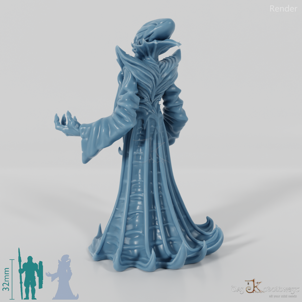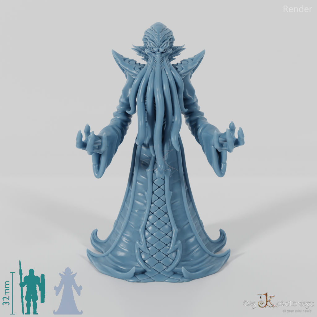 Humanoides Wesen mit oktopusartigem Kopf in langer Robe