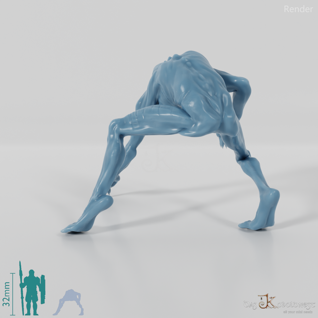 Dürrer Untoter mit langen Klauen und scharfen Zähnen