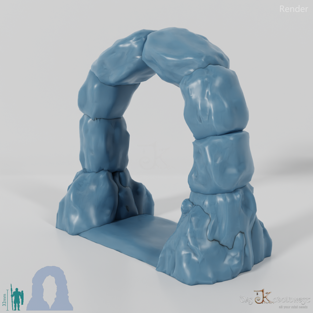 Hoher, runder Bogen aus grob behauenem Fels.   Modell: Cavern Archway by JenniferG , lizenziert unter CC BY 3.0.