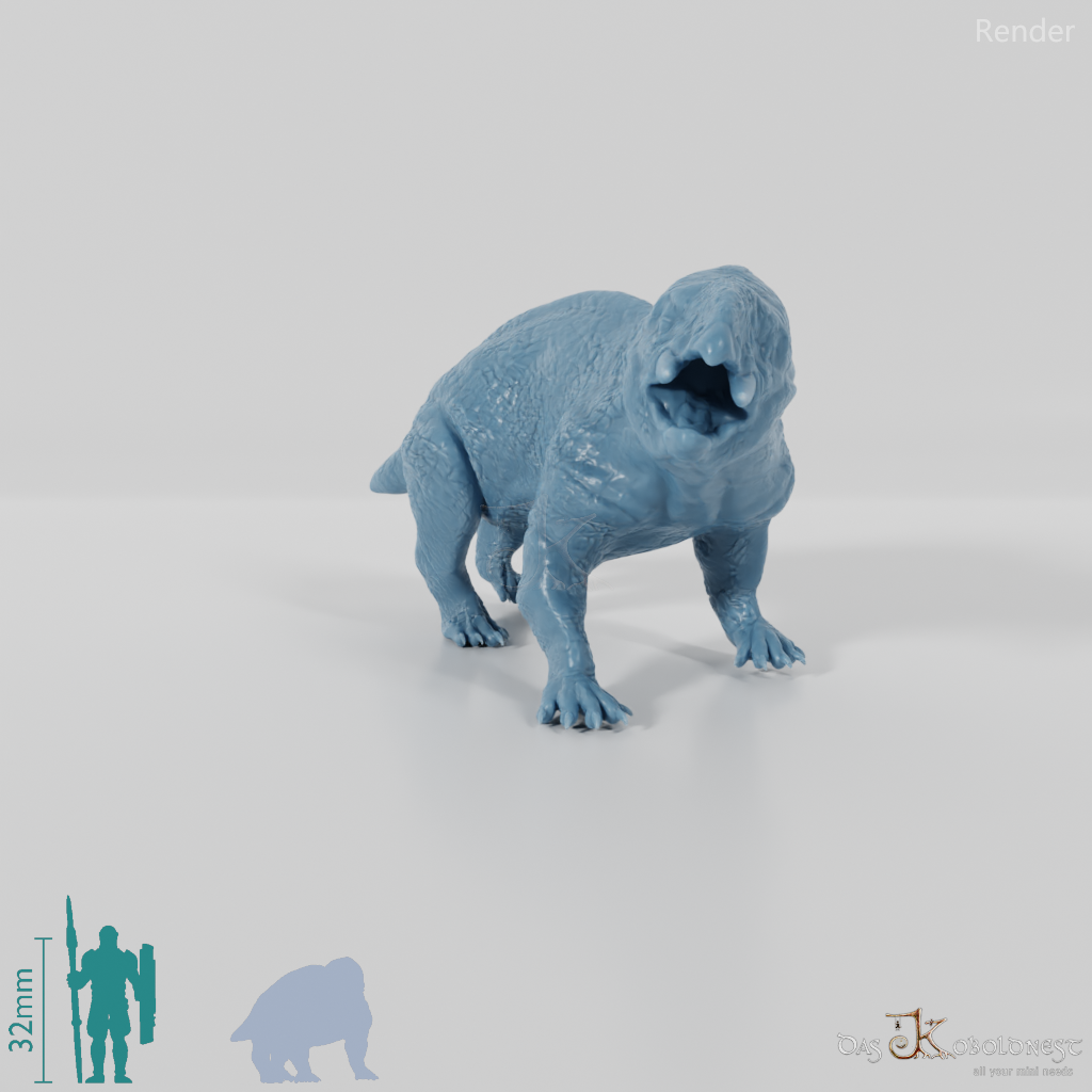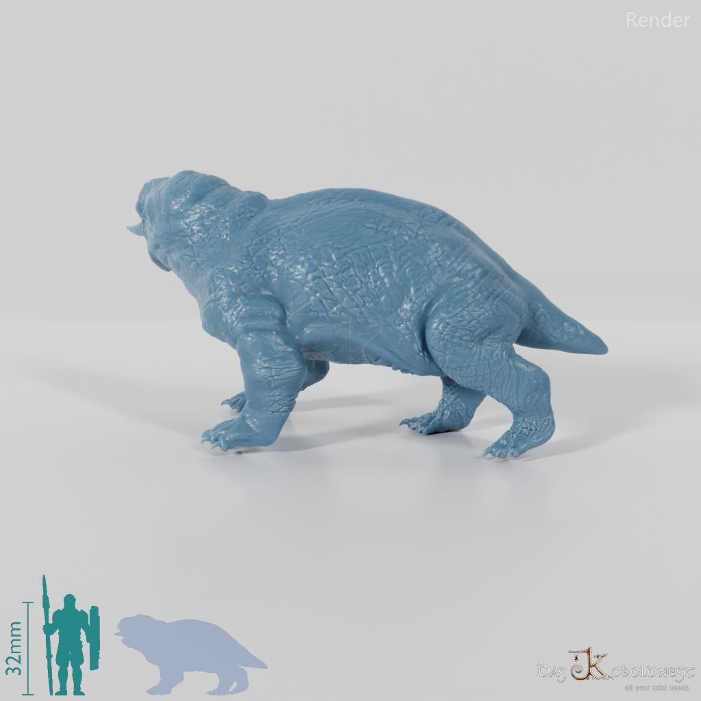 Früher, prähistorischer Säugetierverwandter mit gedrungenem, kräftigem Körper, Hornschnabel und Stoßzähnen