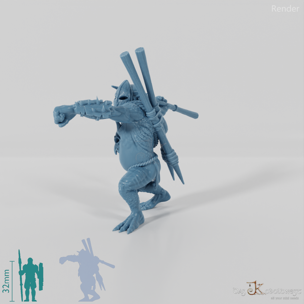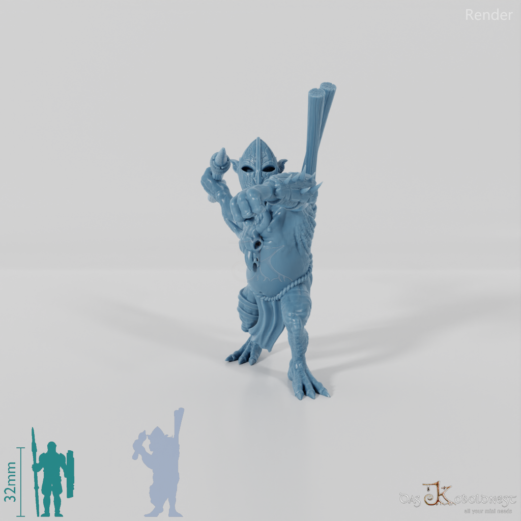 Erlebe die beeindruckende Präsenz des Halbtrolls der Südlande. Diese Kreatur, gezeichnet von großer Statur, mächtigen Pranken und grober, runzeliger Haut, strahlt rohe Kraft und Wildheit aus. In einer knochenverzierten Stammestracht, die seine Verbindung zu den Südlanden betont, steht er bereit und wachsam in Angriffshaltung mit seiner beeindruckenden Waffe.