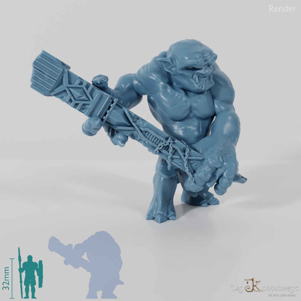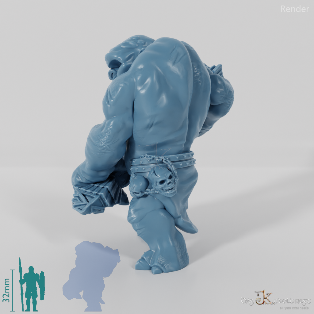 Riesiger Höhlentroll, der eine Steinsäule als zweihändige Waffe schwingt