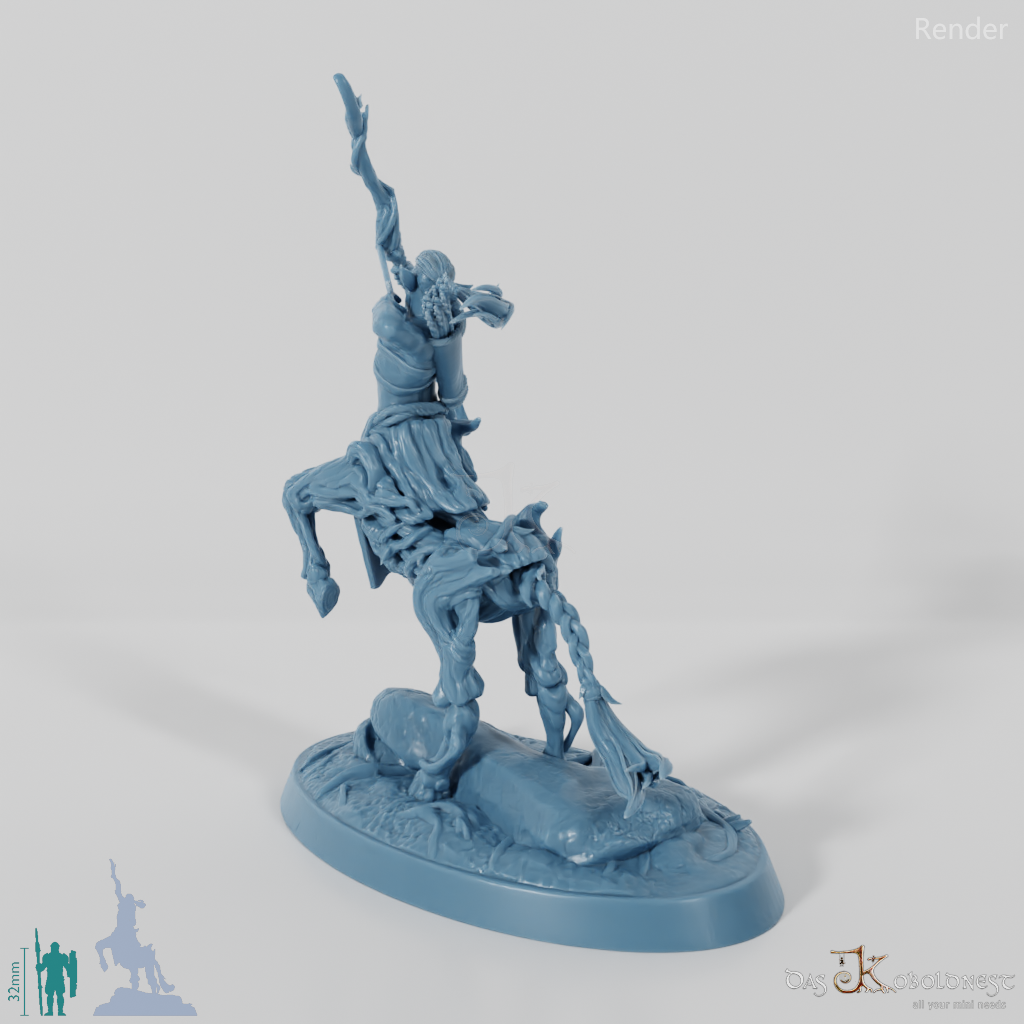 Modell wahlweise mit oder ohne szenische 60x35mm-Ovalbase verfügbar. Da die Base bei Verkleinerung auf 28mm-Maßstab nicht skaliert wird, passt nur die 32mm-Version des Modells exakt in die Aussparungen auf der Base.