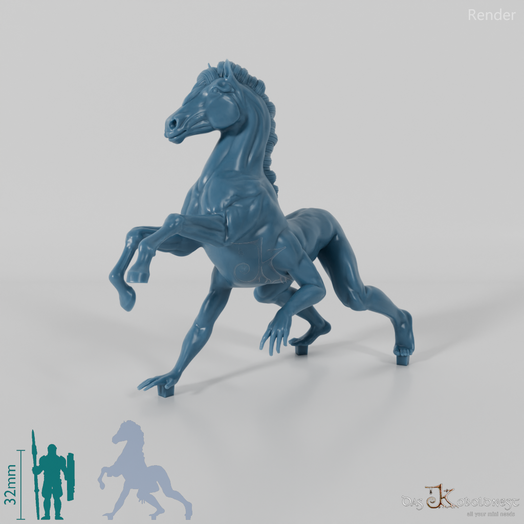 Groteske Gestalt in Form eines galoppierenden Menschen ohne Kleidung mit dem Oberkörper und den Vorderbeinen eines Pferdes.