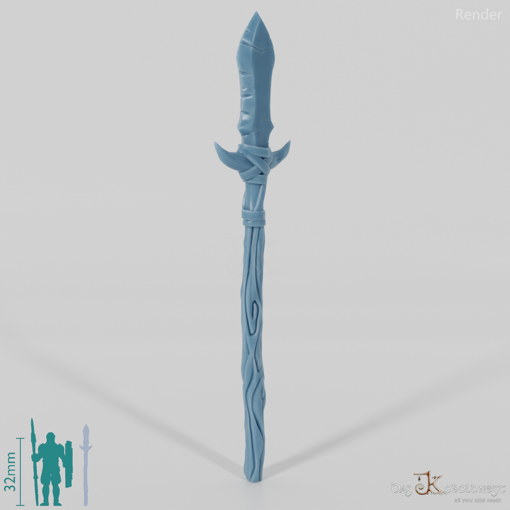 Zweihandspeer mit grobem Holzgriff und einfacher, schartiger Klinge   Model by Clay Cyanide Miniatures
