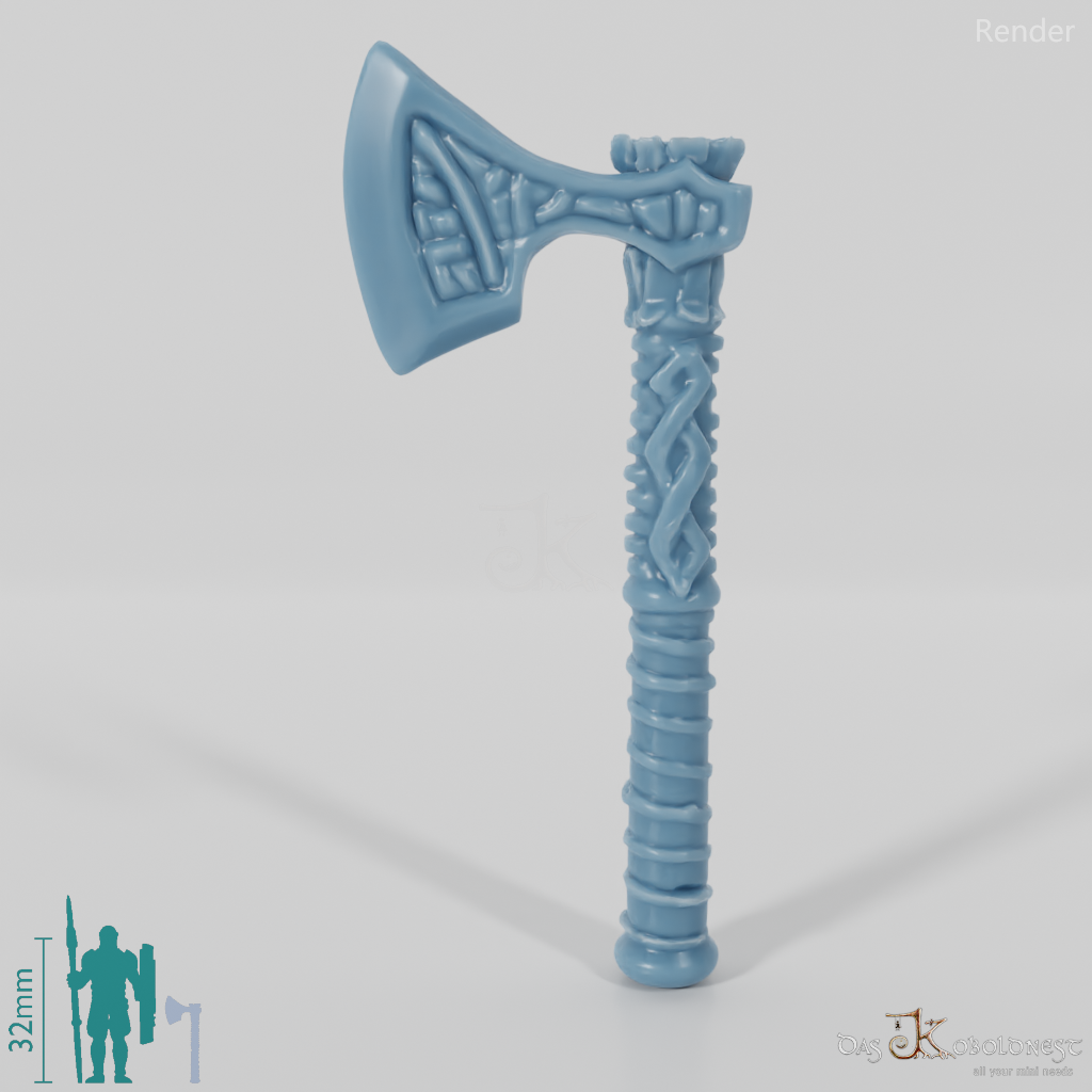 Einhandaxat mit verziertem Blatt und Schaft. Die Axt hat eine Länge von ca. 19,5 mm.