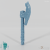 Einhandaxt mit geschnitzem Schaft und verziertem Blatt. Die Axt hat eine Länge von ca. 17 mm.
