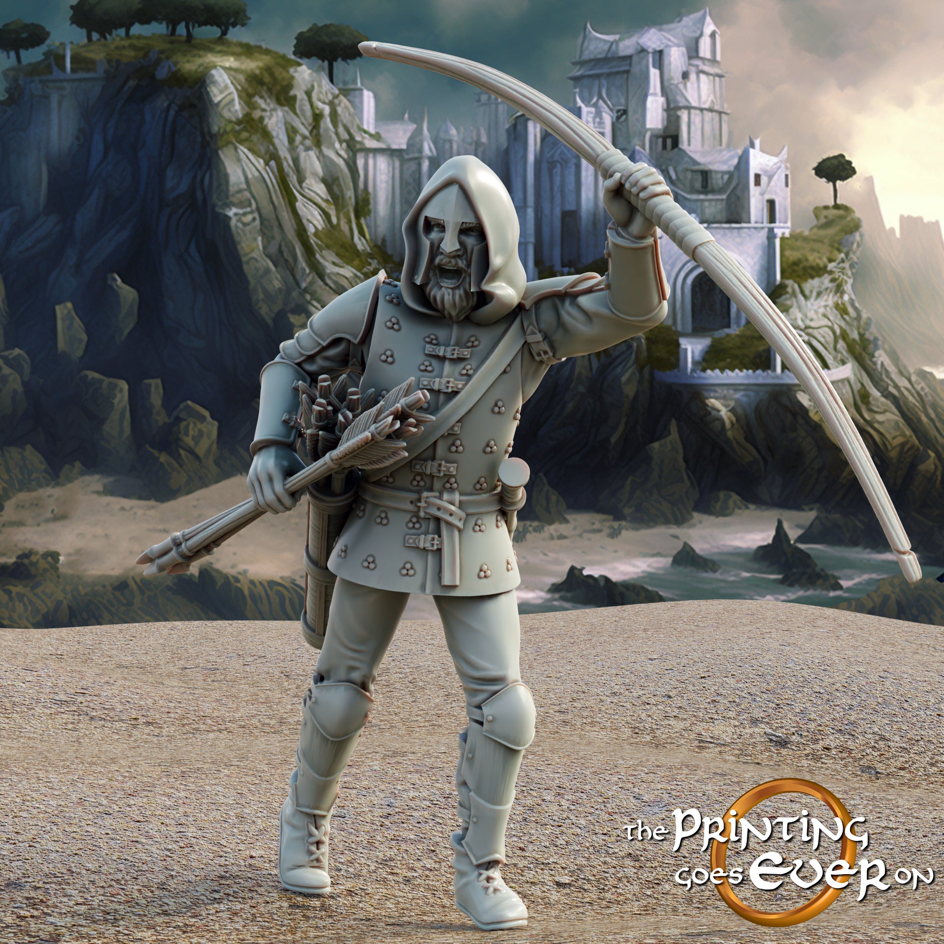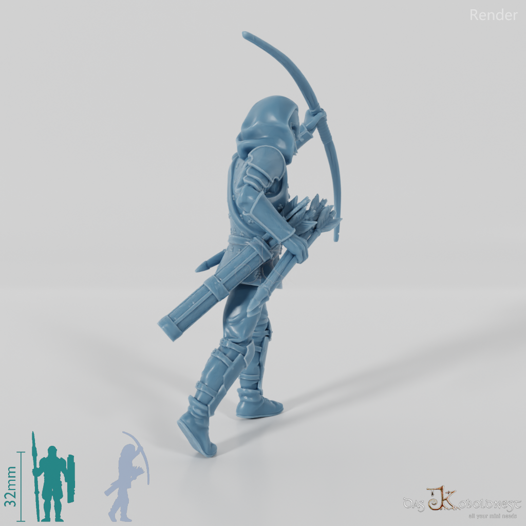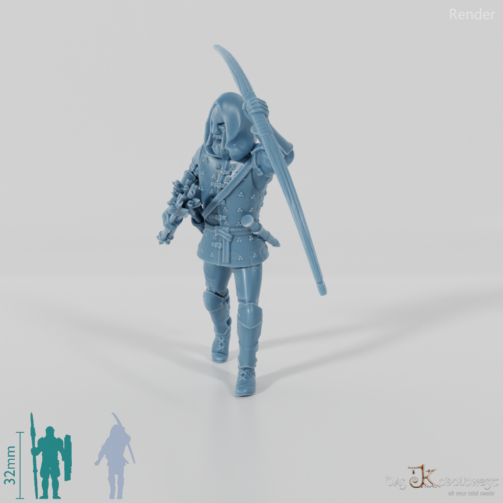 Soldat mit Gambeson und Plattenrüstung, der mit einem Langbogen bewaffnet ist
