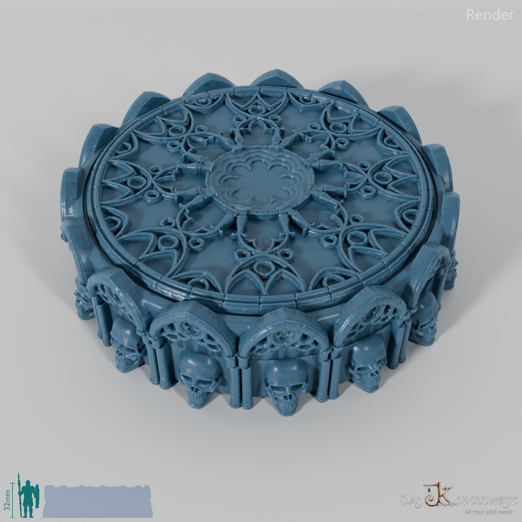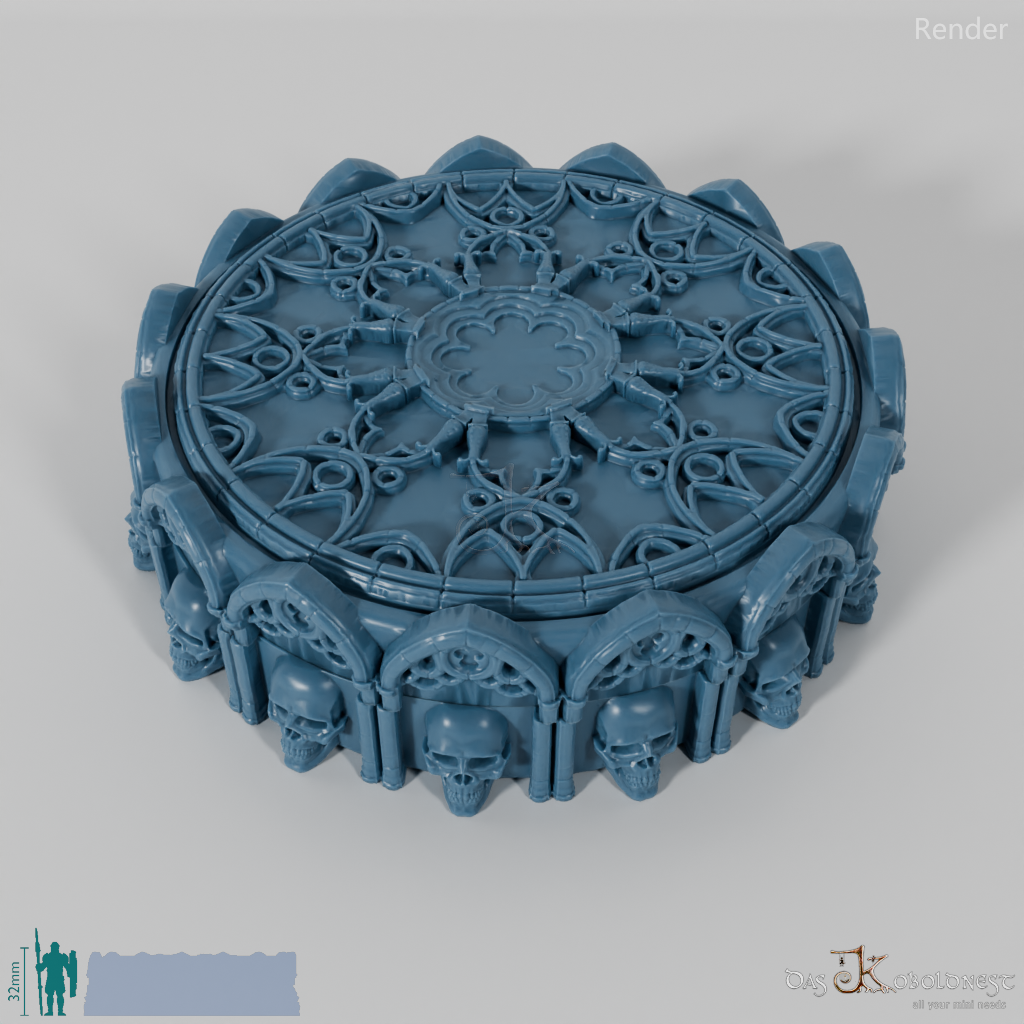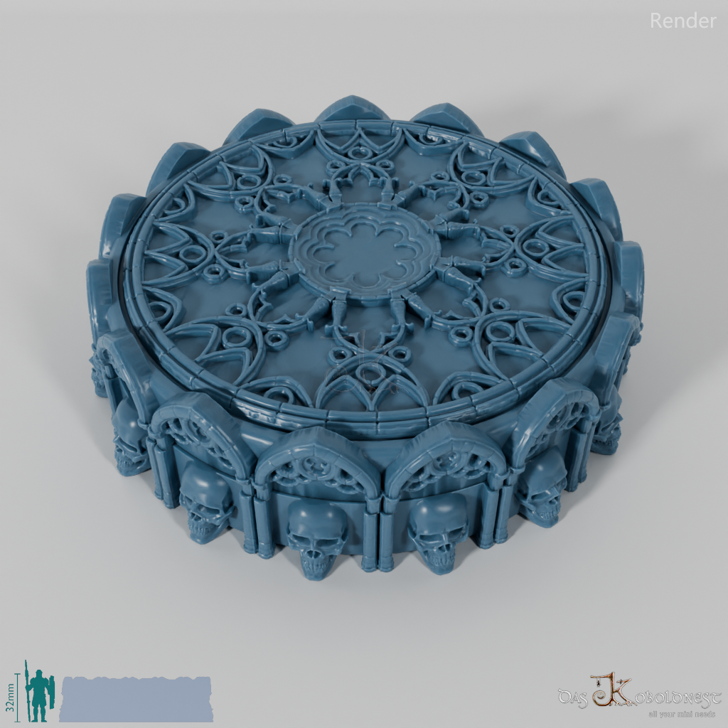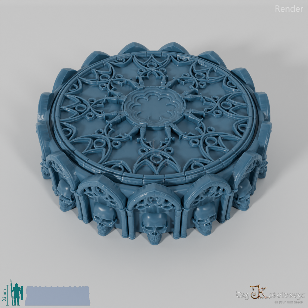 Verzierte Aufbewahrungsbox für sieben Würfel mit gotischen Ornamenten.