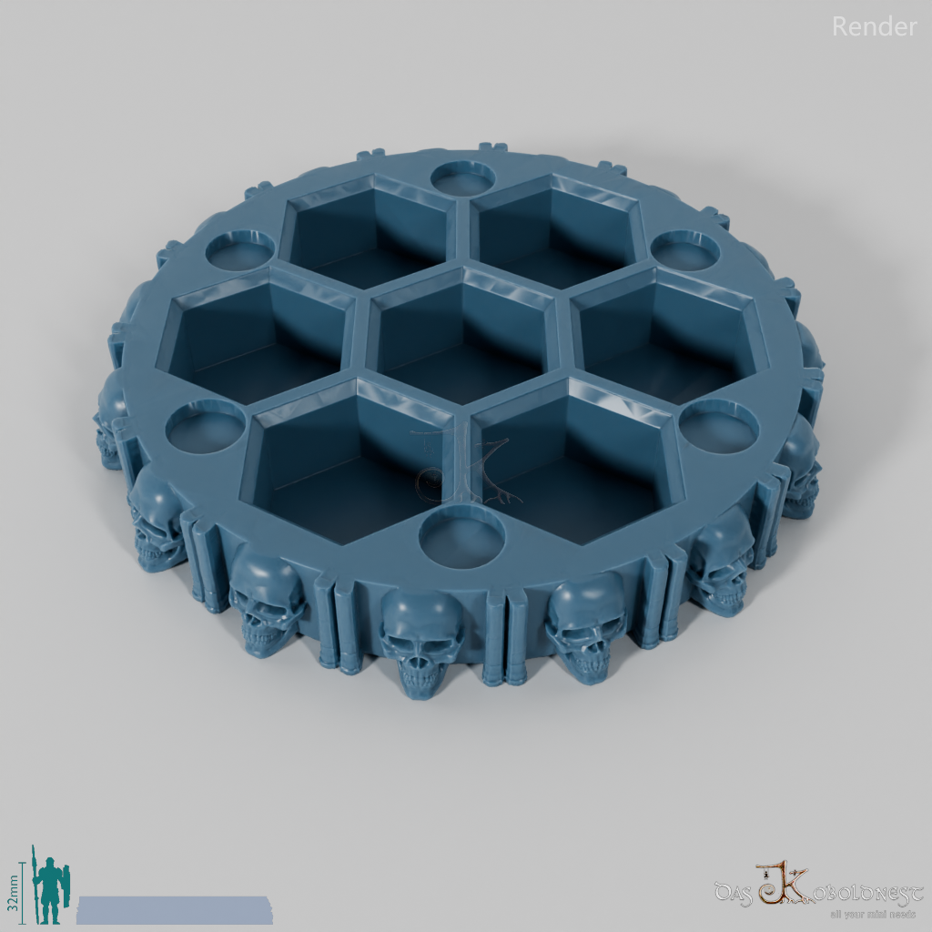 Die Box hat sieben sechseckige Fächer, die deine Würfel sicher und geschützt an Ort und Stelle halten. Deckel und Box werden von insgesamt 12 Scheibenmagneten zusammengehalten, wodurch die Würfel schnell ausgepackt und genau so schnell wieder verstaut sind.