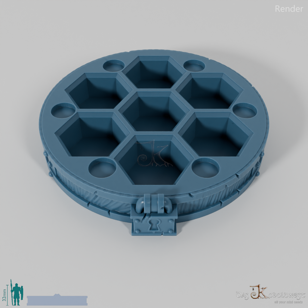 Die Box hat sieben sechseckige Fächer, die deine Würfel sicher und geschützt an Ort und Stelle halten. Deckel und Box werden von insgesamt 12 Scheibenmagneten zusammengehalten, wodurch die Würfel schnell ausgepackt und genau so schnell wieder verstaut sind.