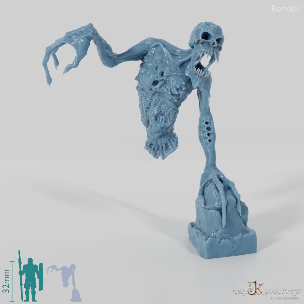 Entstellte untote Gestalt ohne Beine und mit langen Krallen und Reißzähnen.