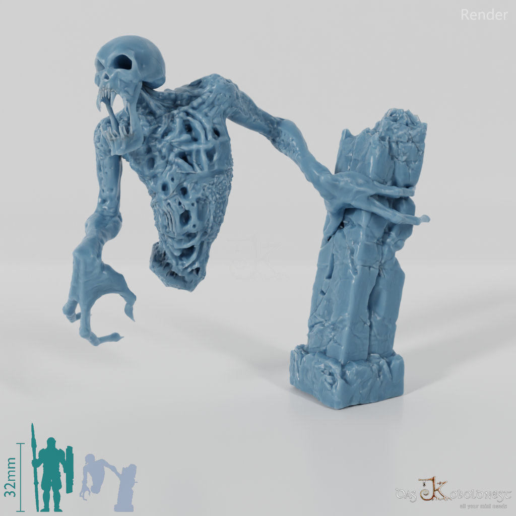 Entstellte untote Gestalt ohne Beine und mit langen Krallen und Reißzähnen.