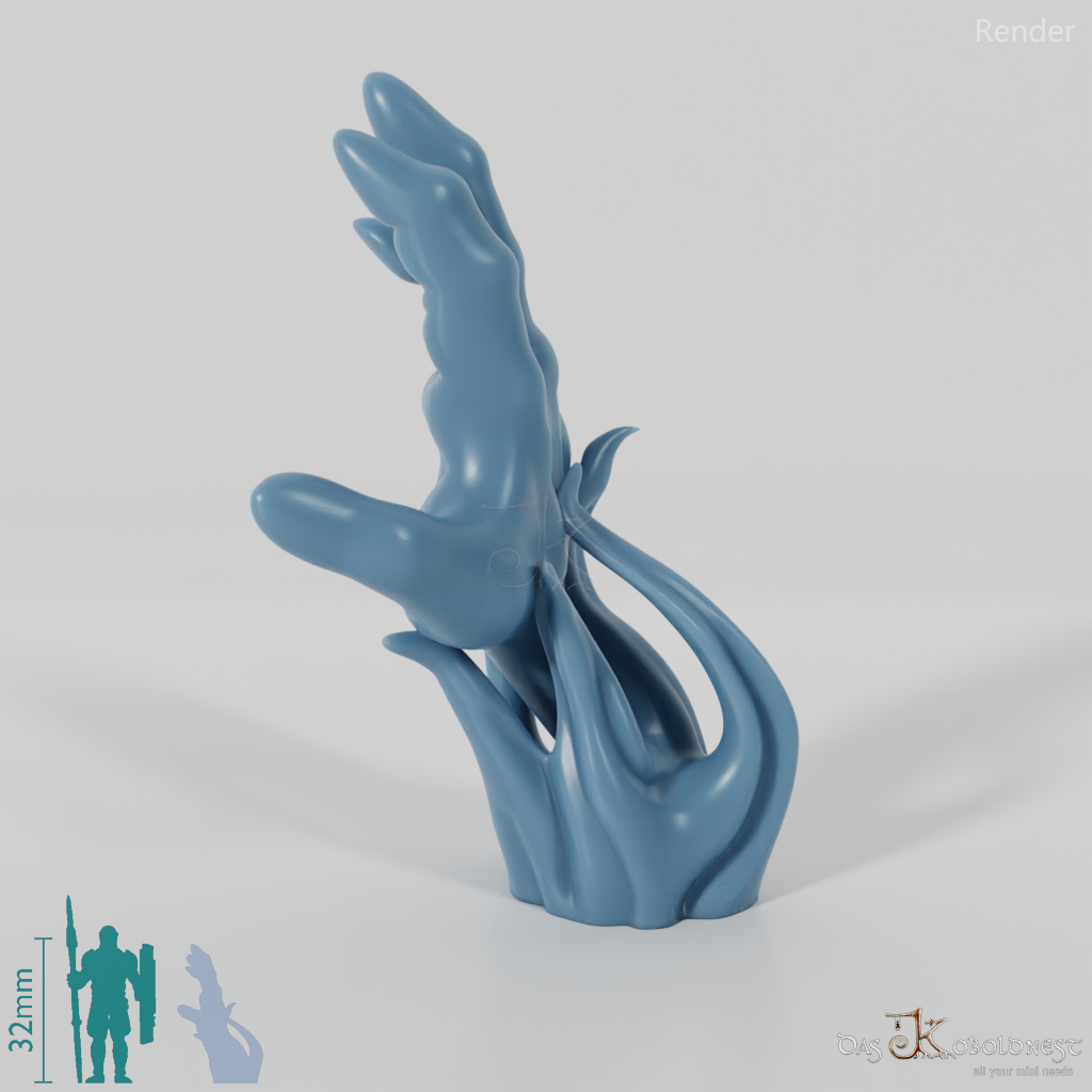Große, beschworene Hand mit offener Handfläche nach vorne Modell: Spell Effects Pt 1 by Valandar, lizenziert unter CC BY 3.0.