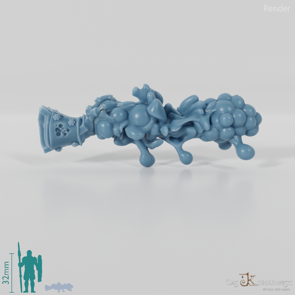 Zauber in Form eines Strahls klebrig blubbernder Masse, der von einer Hand in Plattenrüstung ausgeht