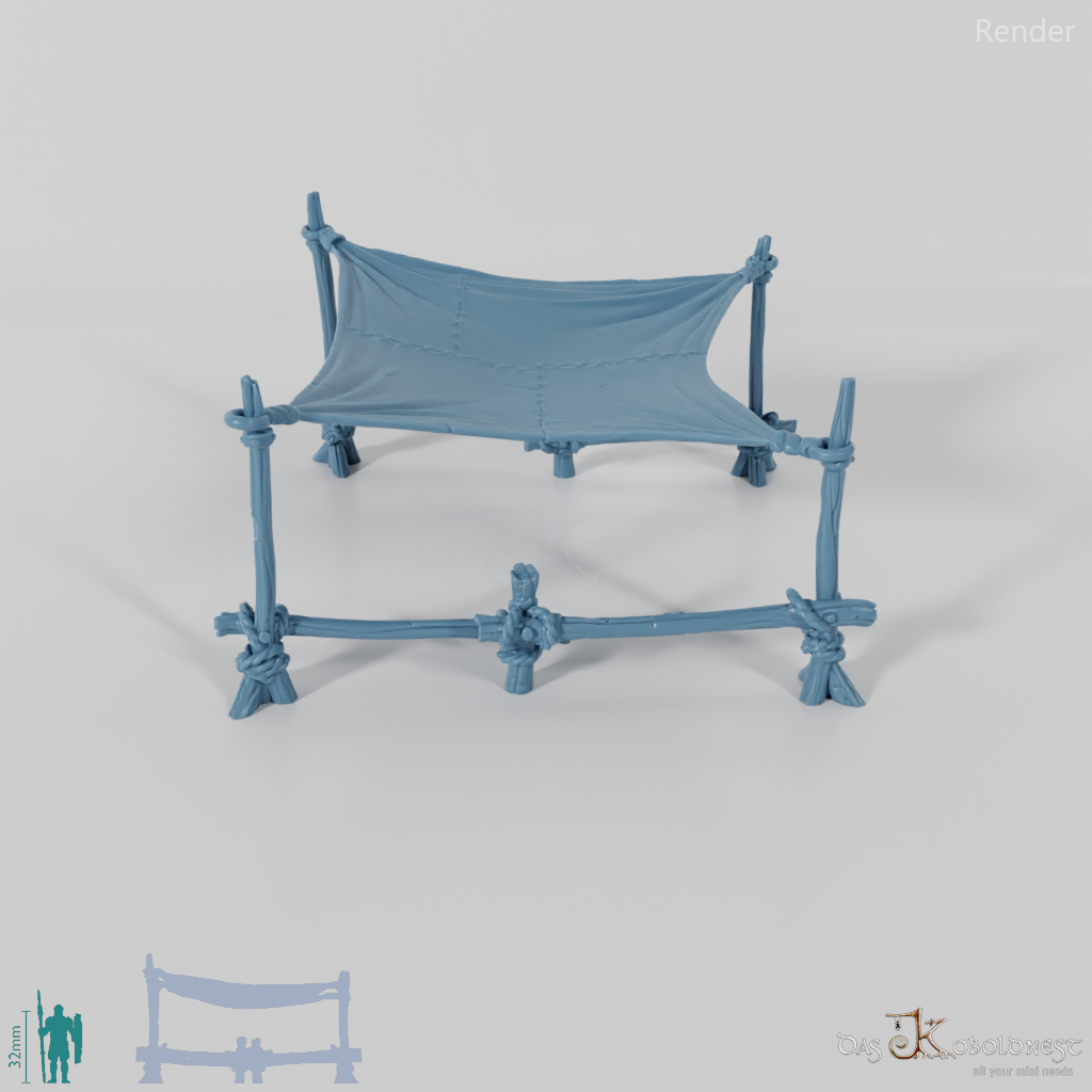 An vier Masten als Baldachin aufgespannte, große Stoffbahn