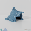 Zelt aus übereinanderliegenden Häuten, auf dem sich Menschenschädel befinden