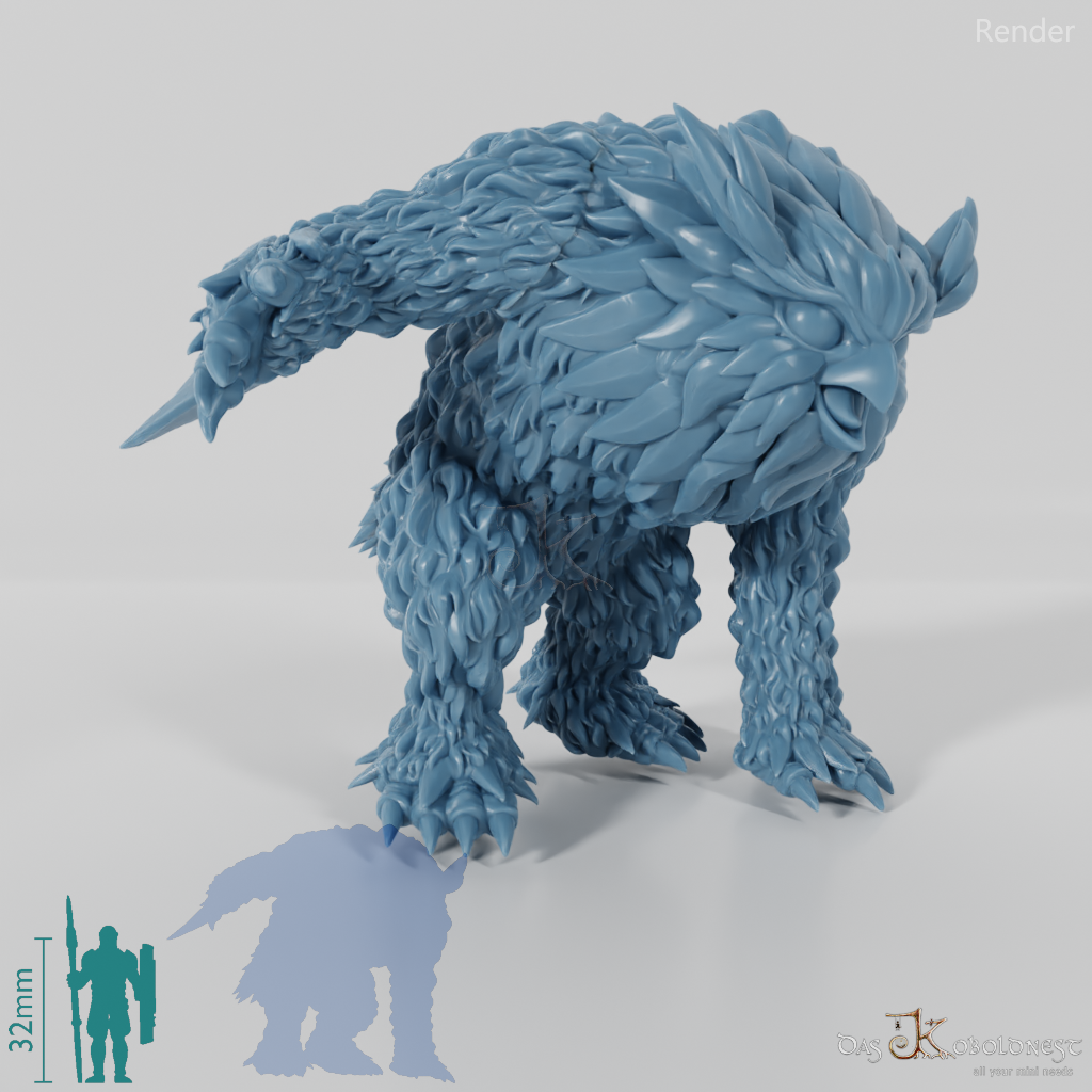Zuschlagender Eulenbär mit großen Pranken. Felsige Base separat erhältlich